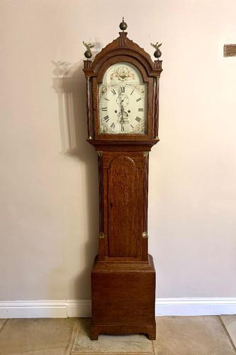 Antique George III Quality Carved Oak Brass Face Longcase Clock
