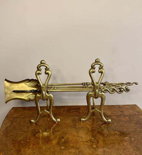 Fine Quality Antique Edwardian Brass Fire Irons & Fire Dogs