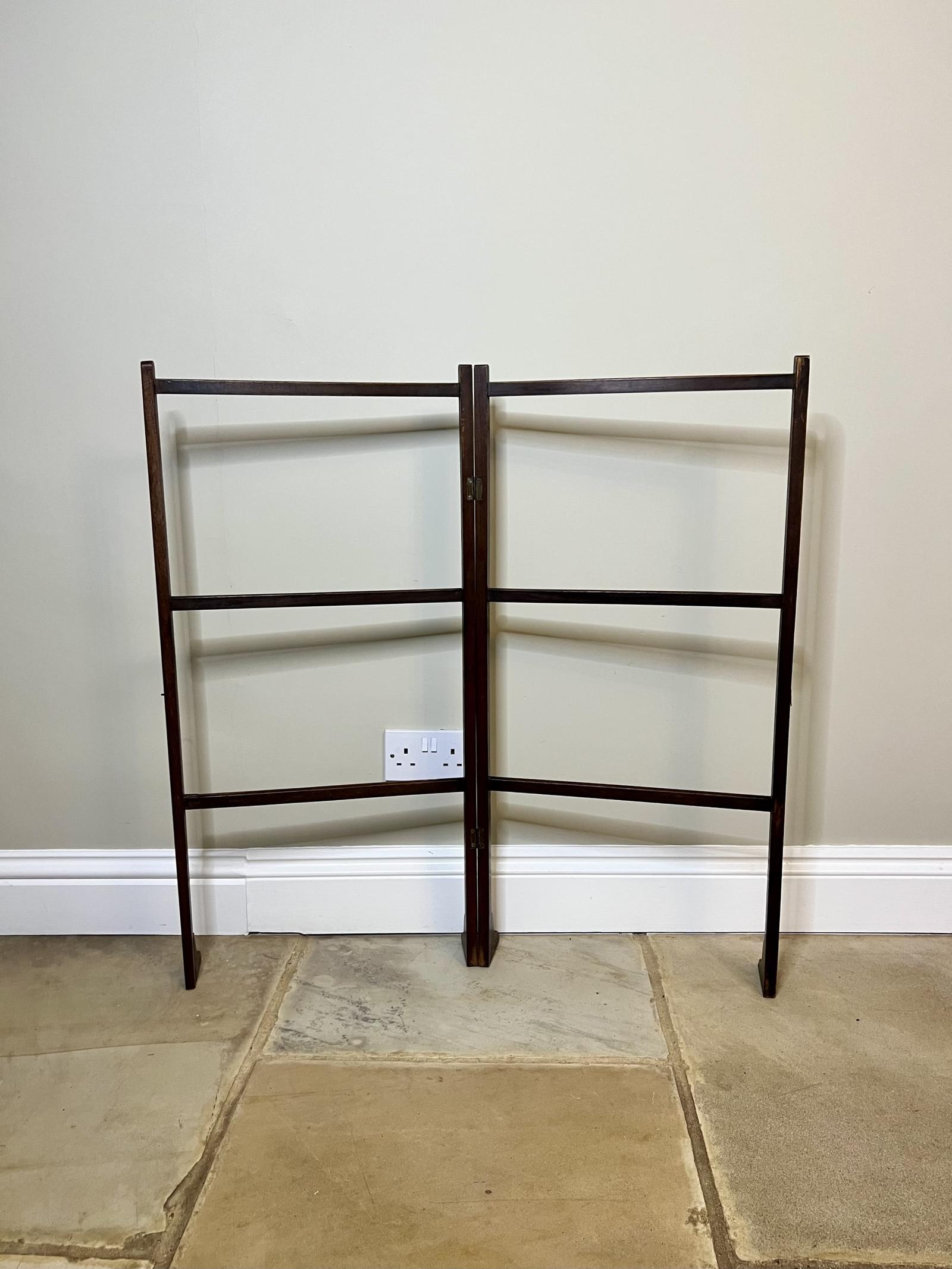 Offered for sale is this Edwardian antique mahogany folding clothes airer having a single gate folding action with six mahogany splats, standing on shaped feet.