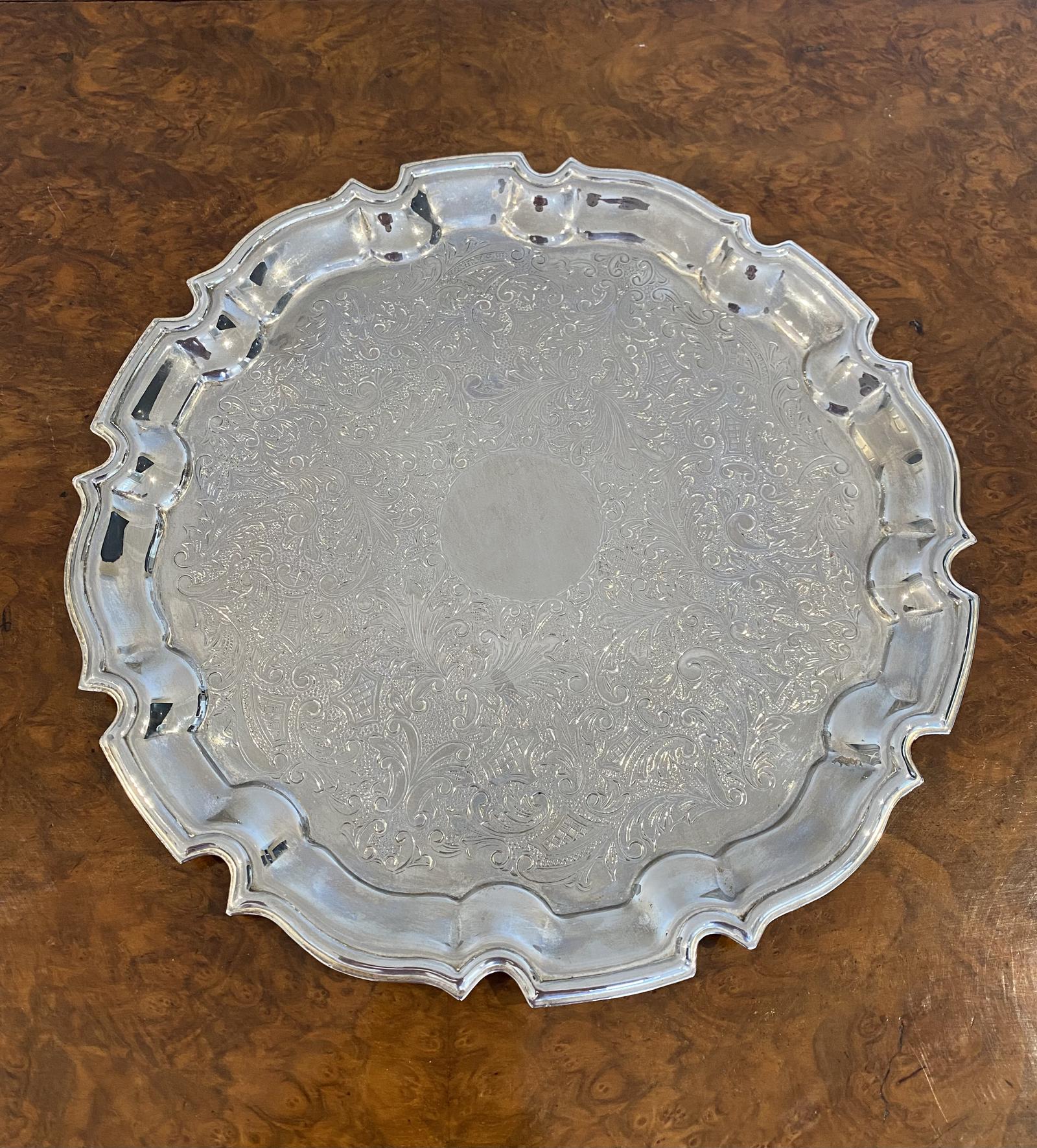 Antique Edwardian quality shaped silver plated tray, having a quality engraved centre with a shaped edge.