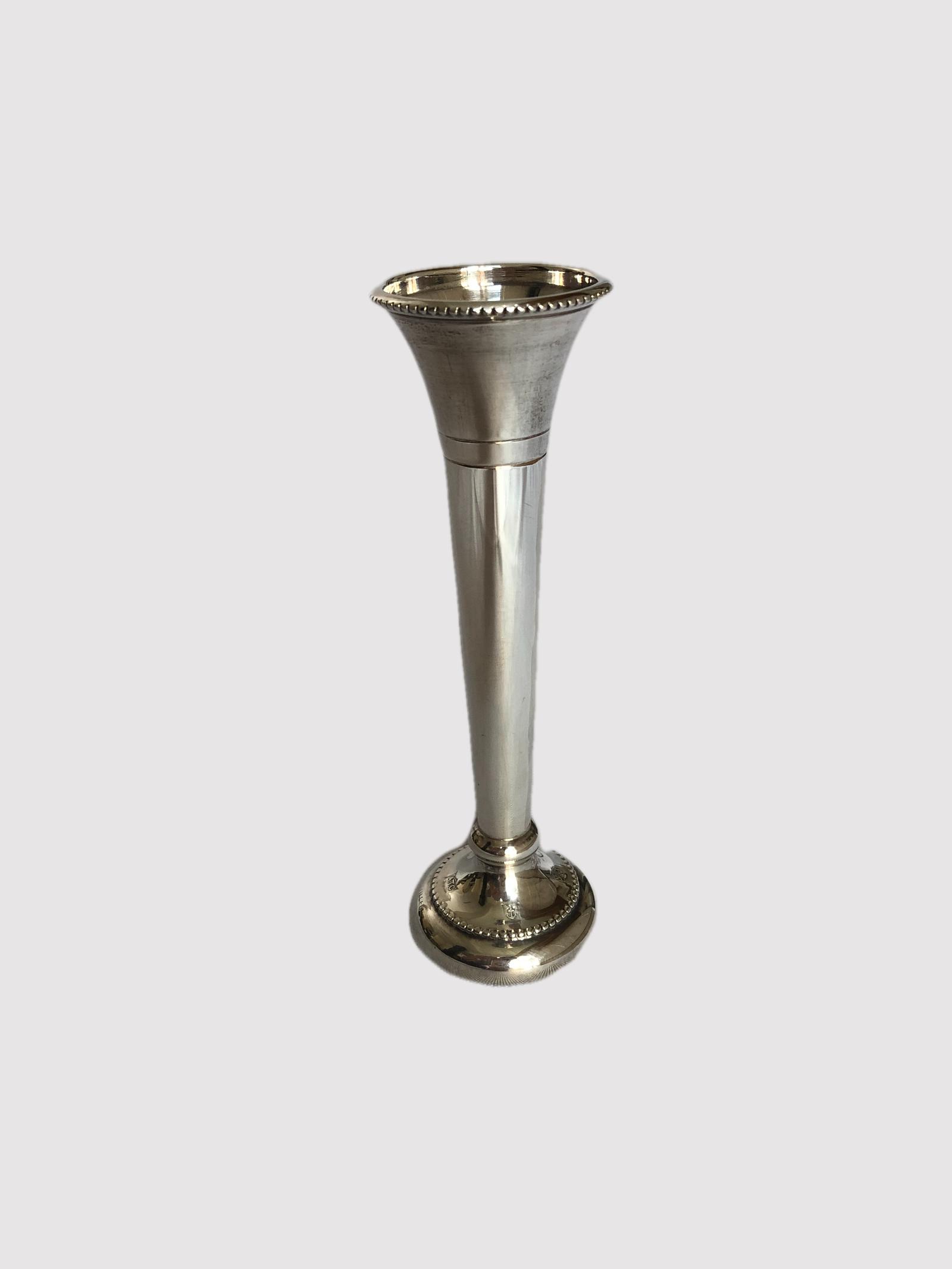Antique Edwardian Silver Spill Vase. Raised on a circular base with beaded decoration and a shaped open top.