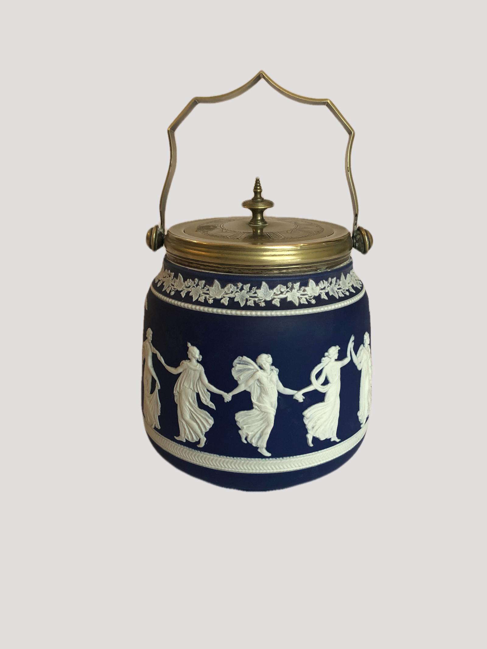 Antique Edwardian Wedgwood Jasper Ware Biscuit Barrel