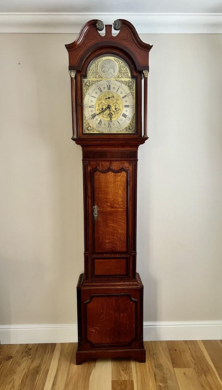 Antique George III Quality Oak & Mahogany Brass Face Longcase Clock