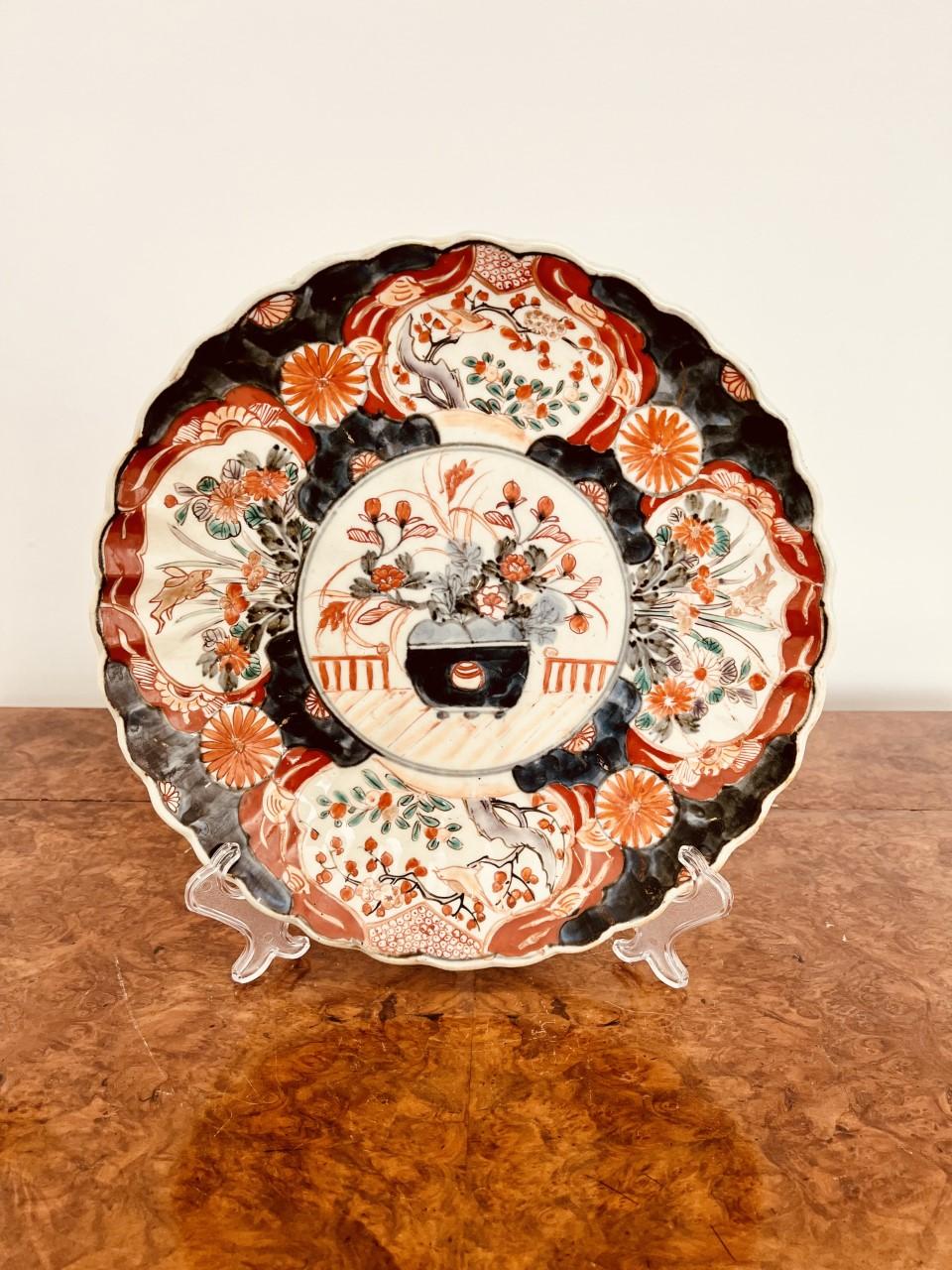 Antique Japanese quality Imari plate having quality hand painted decoration in wonderful blue, red, green and white colours.