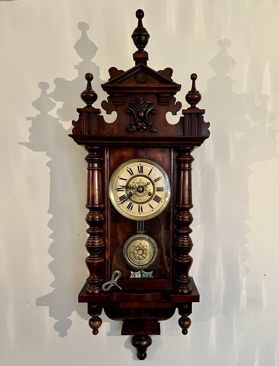 Antique Victorian Quality Carved Walnut Vienna Wall Clock