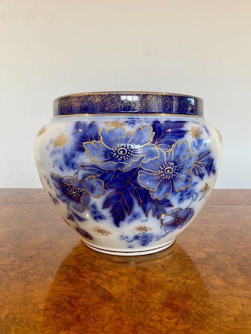 Antique Victorian quality hand painted jardiniere having fantastic hand painted flowers in wonderful blue, white & gold colours.