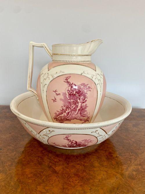 Antique Victorian Quality Hand Painted Jug & Bowl Set