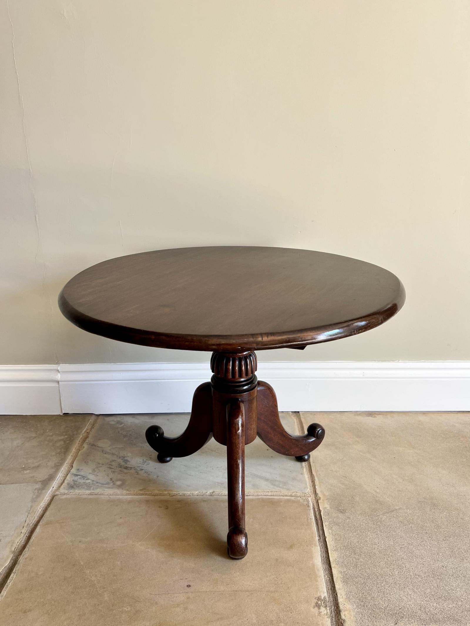 Antique Victorian quality mahogany coffee table having a quality mahogany circular top supported by a turned column, standing on shaped cabriole legs.