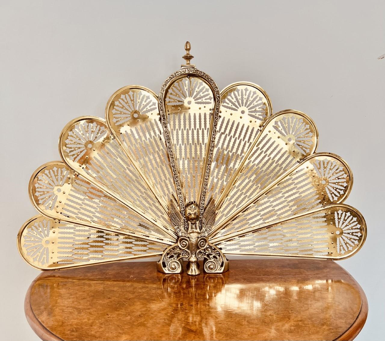 For sale is this mid 19th Century Victorian antique quality ornate brass peacock folding fire screen.