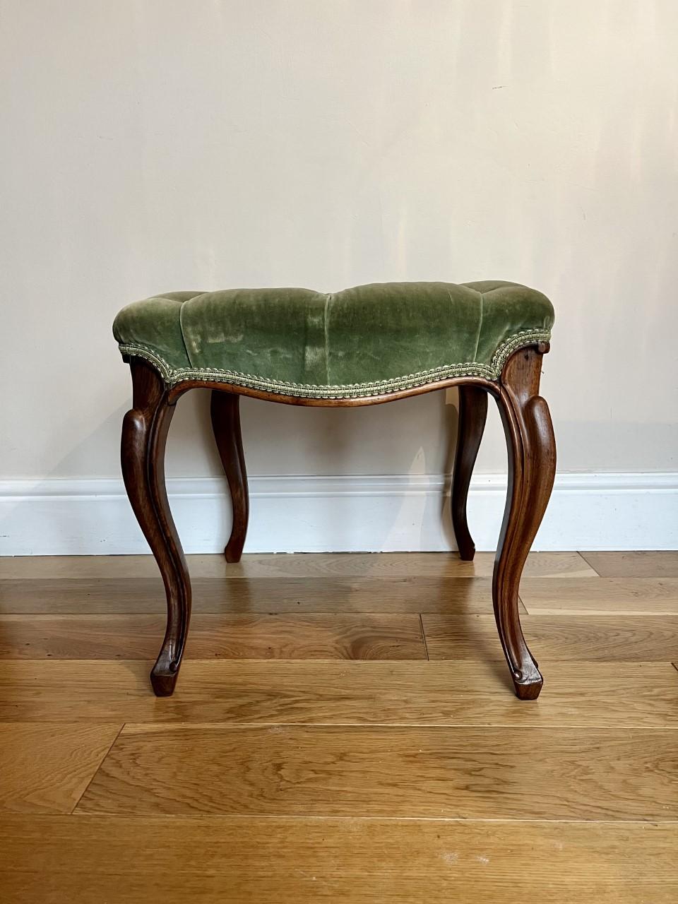 Antique Victorian quality walnut stool having a deep buttoned upholstered serpentine shaped seat standing on solid walnut shaped cabriole legs with scroll feet