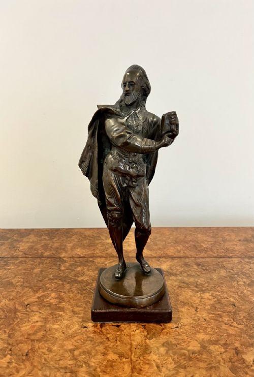 Fantastic quality antique Victorian bronze figure of Shakespeare having a quality antique Victorian French figure of Shakespeare raised on wooden plinth.