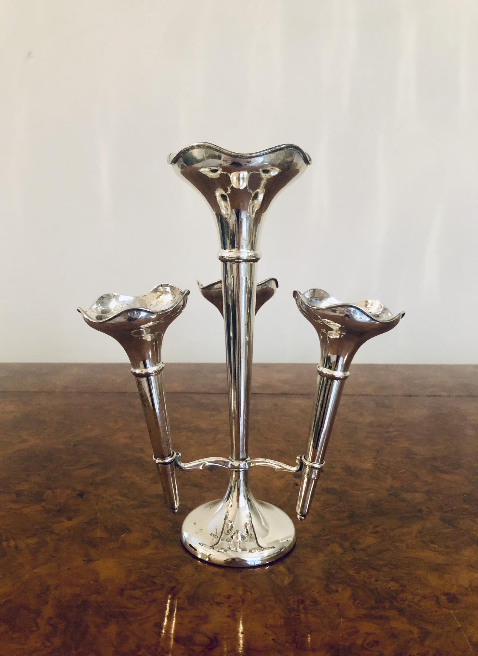 George V hall marked silver stunning table epergne, having a central fluted tapering vase flanked by three matching vases on a loaded tapering base