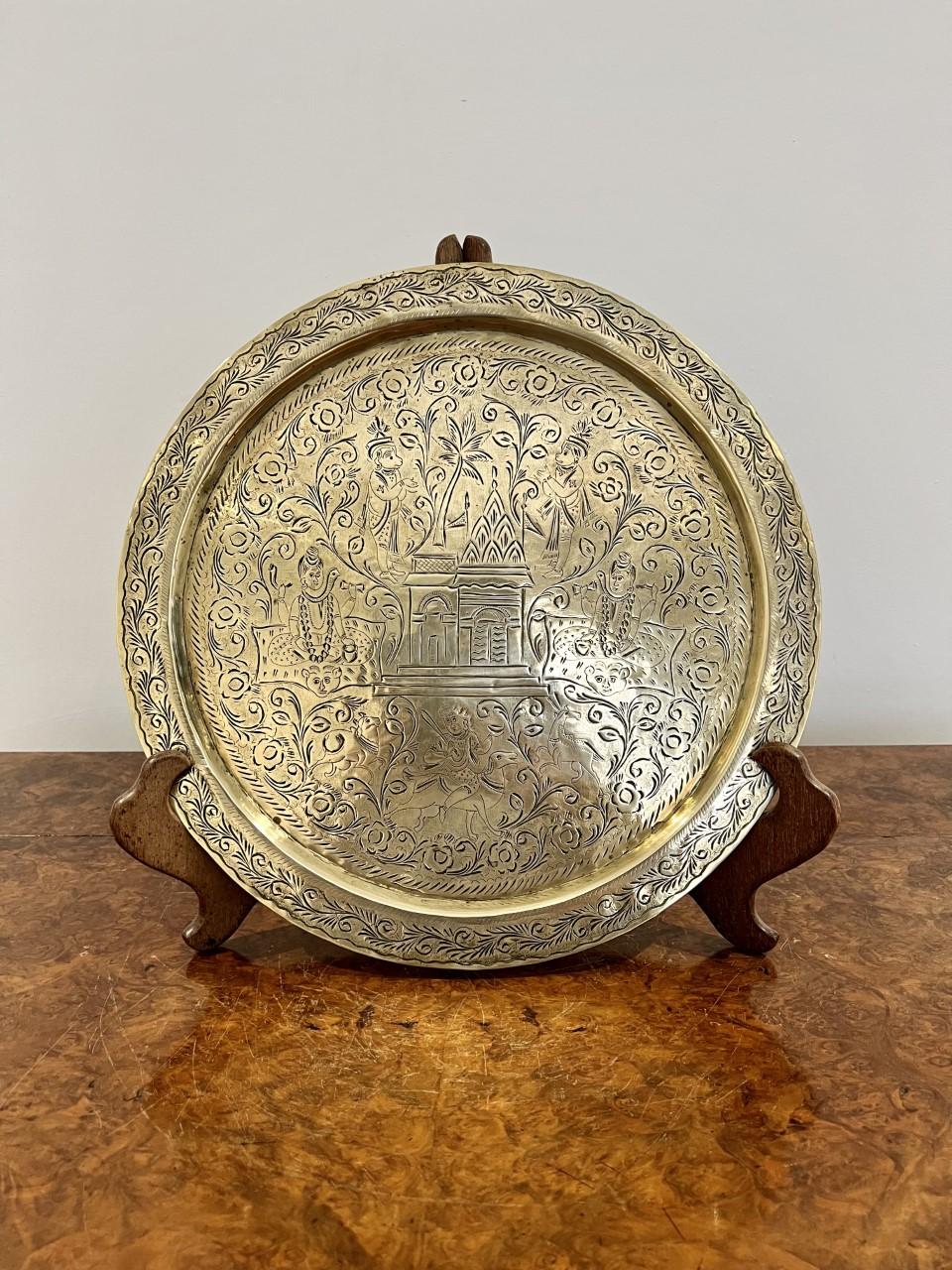 Impressive Antique Victorian Quality Engraved Circular Brass Tray