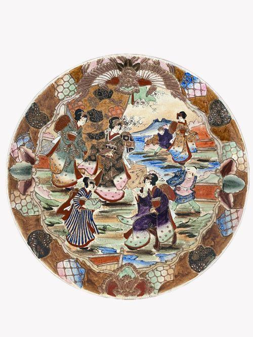Large Antique Japanese Quality Satsuma Hand Painted Charger