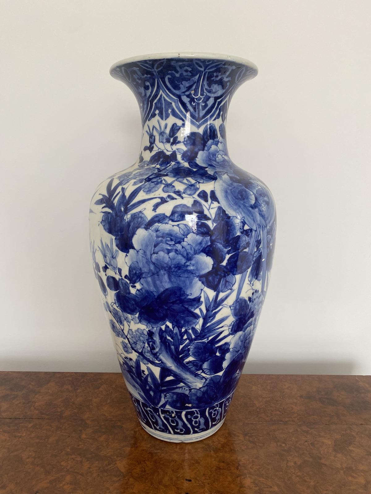 This is a large antique quality antique Japanese Imari blue and white floor standing vase. Quality Japanese Imari floor standing vase in wonderful blue and white colours.