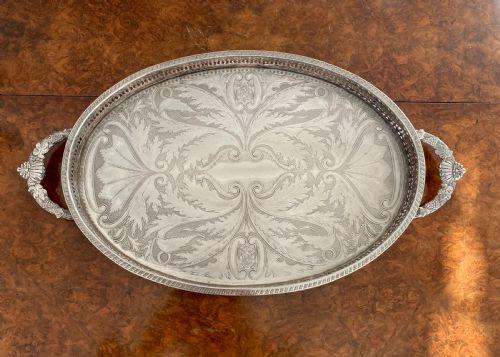 Large Antique Quality Silver Plated Oval Engraved Tea Tray