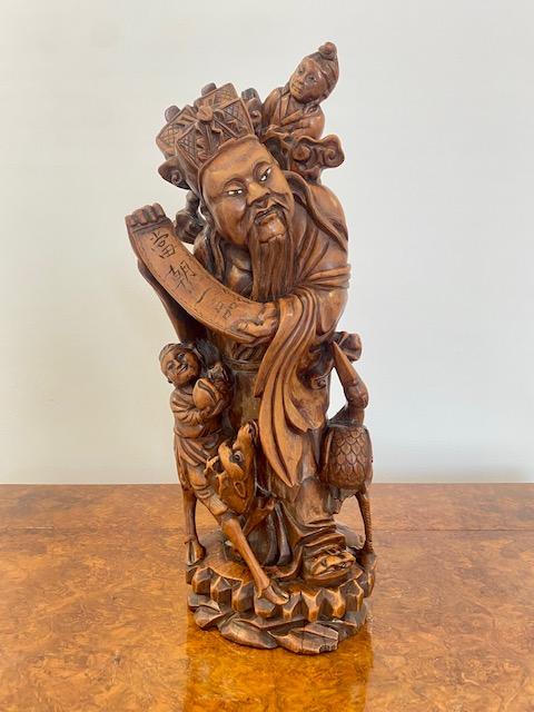 Superb quality antique Chinese carved hardwood figure of an immortal