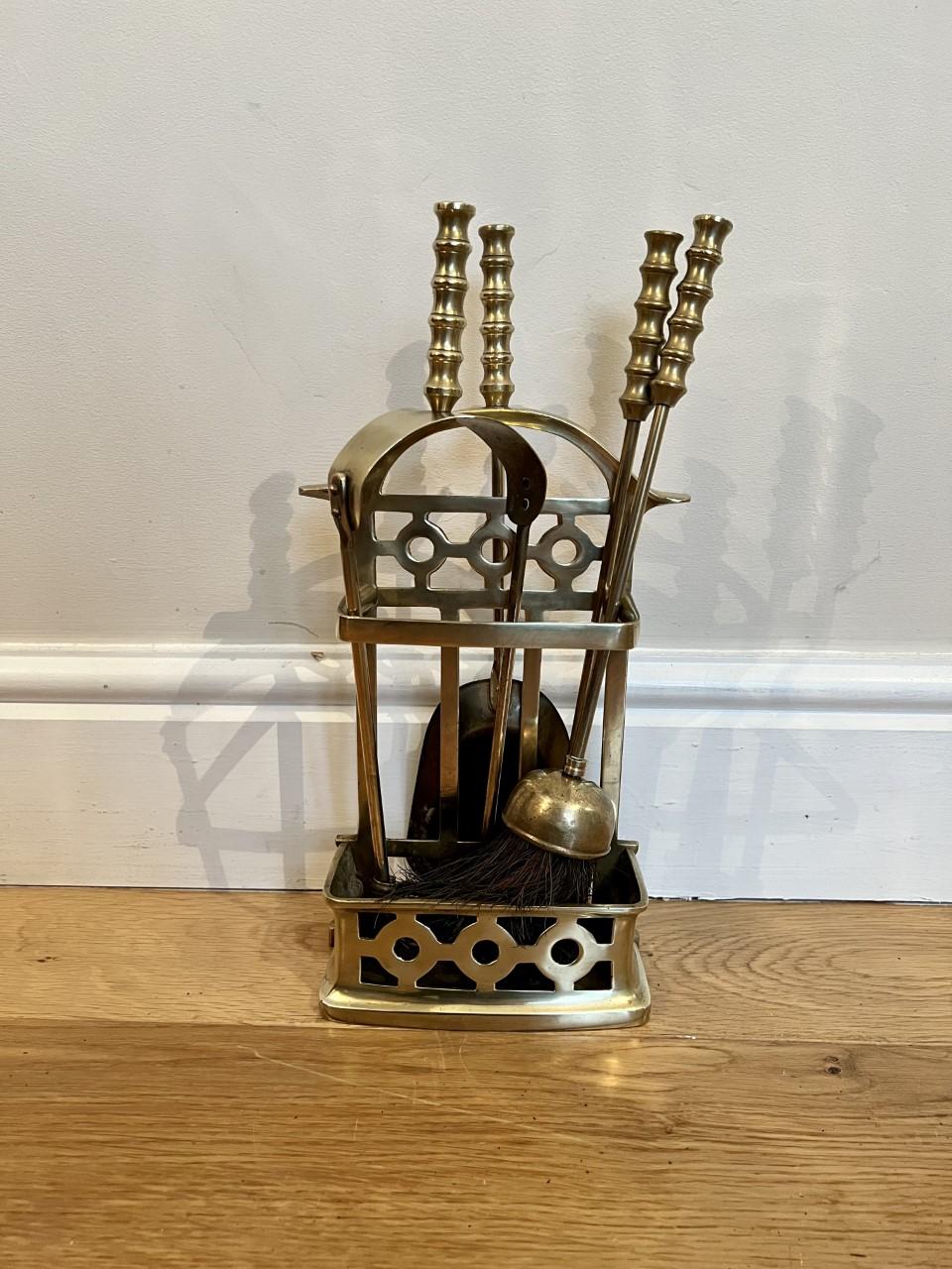 Lovely Antique Edwardian Brass Companion Set & Stand