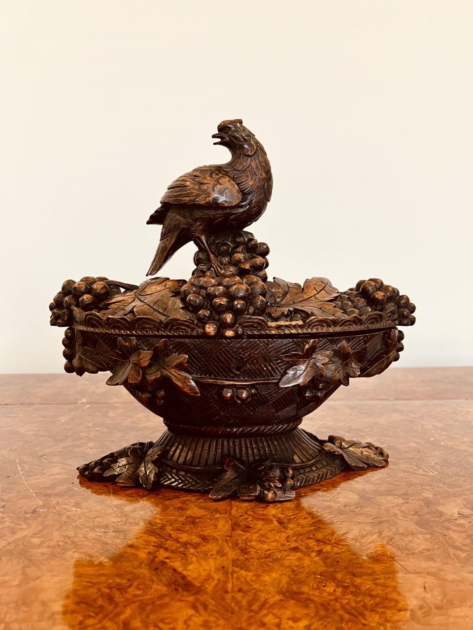 Outstanding quality carved Black Forest jewellery box having a quality carved eagle to the top above carved leaves and berries standing on a shaped carved base
