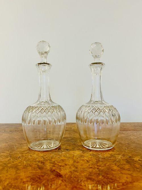 Pair of antique Edwardian cut glass decanters, Having a quality pair of cut glass shaped decanters with cut glass stoppers