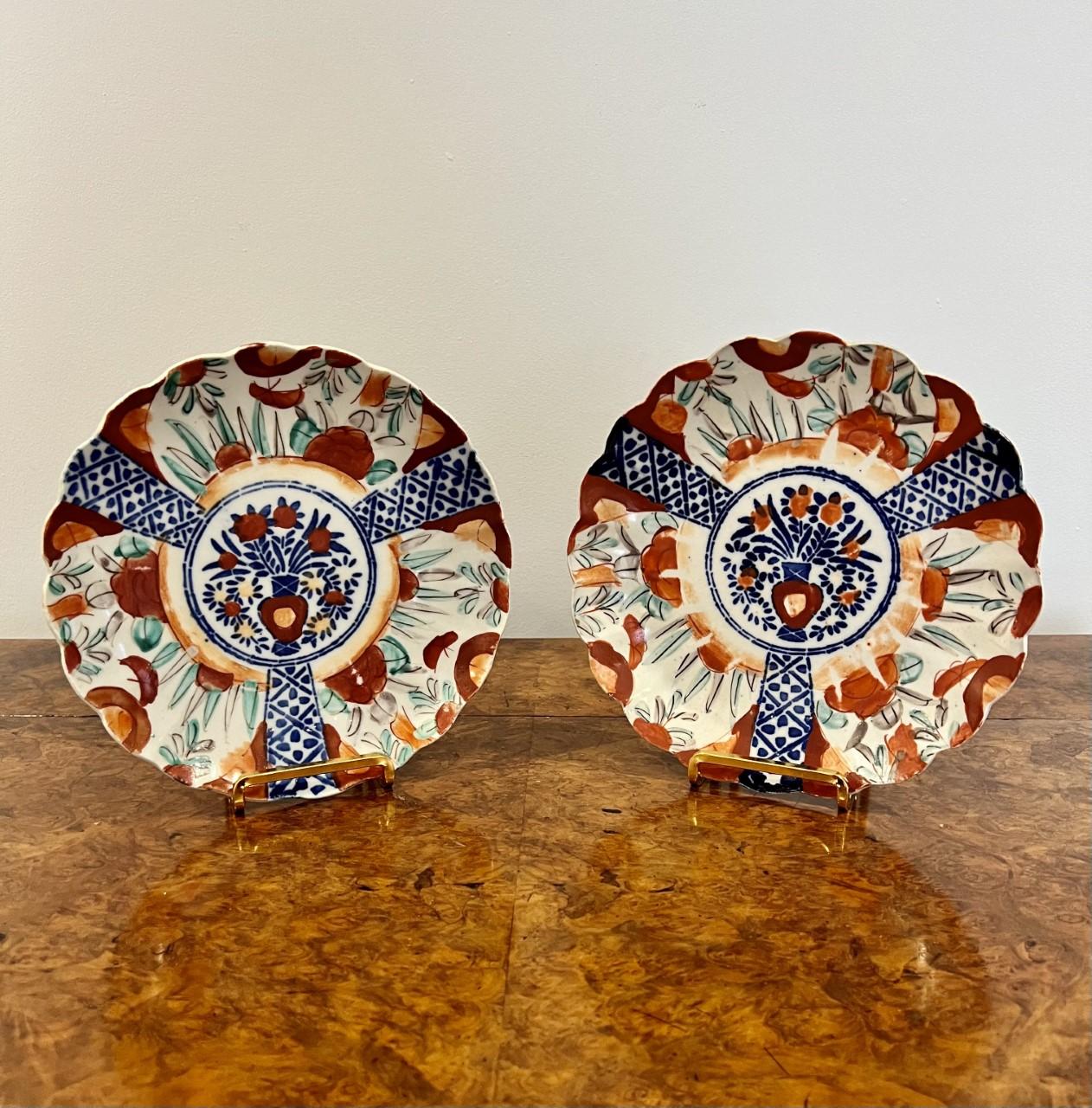 Pair of Antique Japanese Imari Plates with Scalloped Shaped Edges