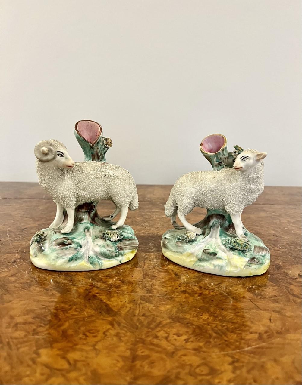 Pair of Antique Victorian Quality Staffordshire Lambs