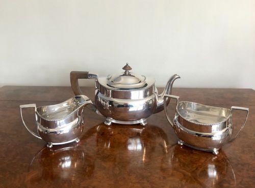 Quality antique Edwardian silver plated tea set, Stunning Edwardian tea set consisting of a silver plated teapot, sugar bowl & a milk jug with shaped handles raised on bun feet.