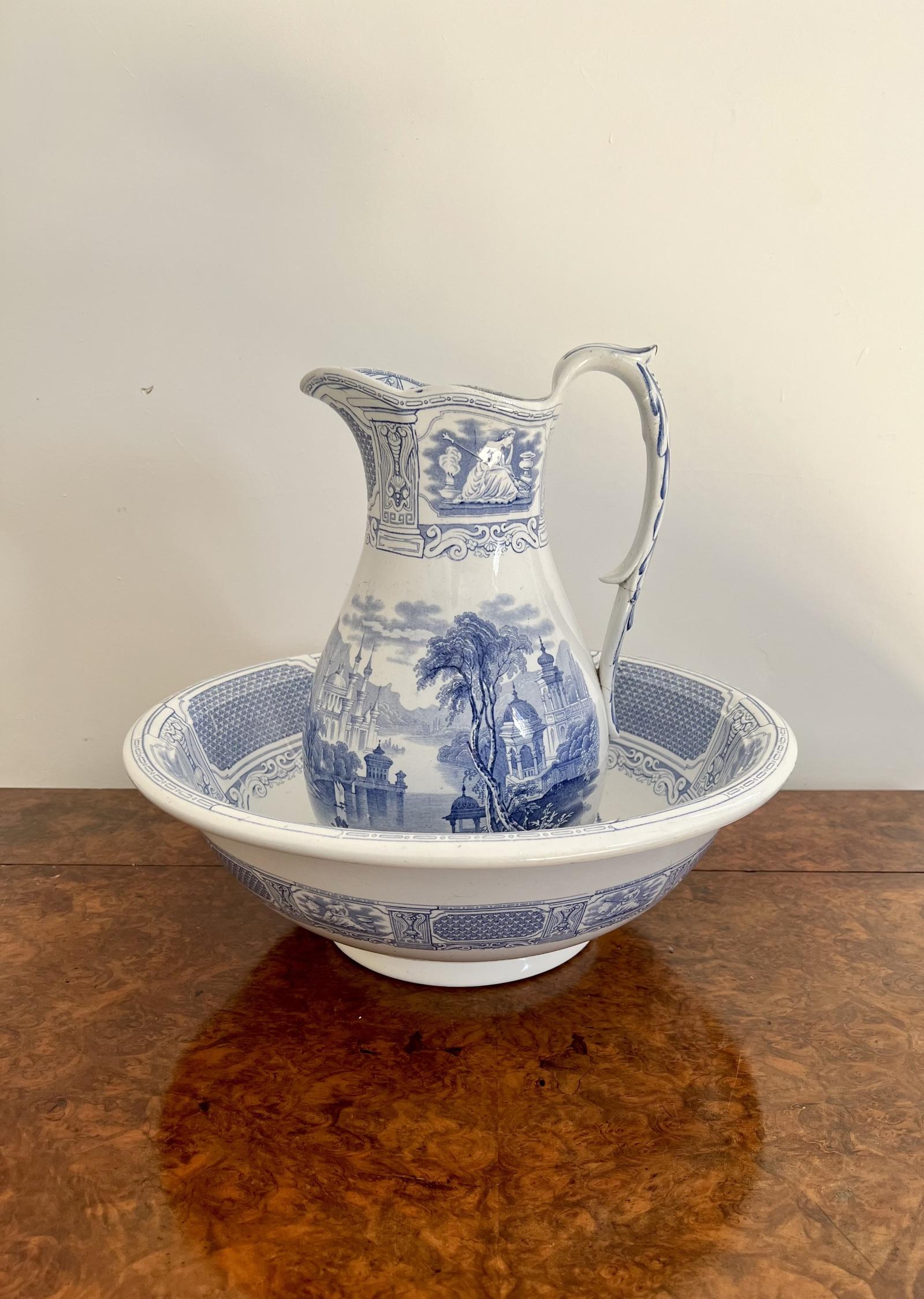 Quality Antique Victorian Blue & White Jug + Bowl Set