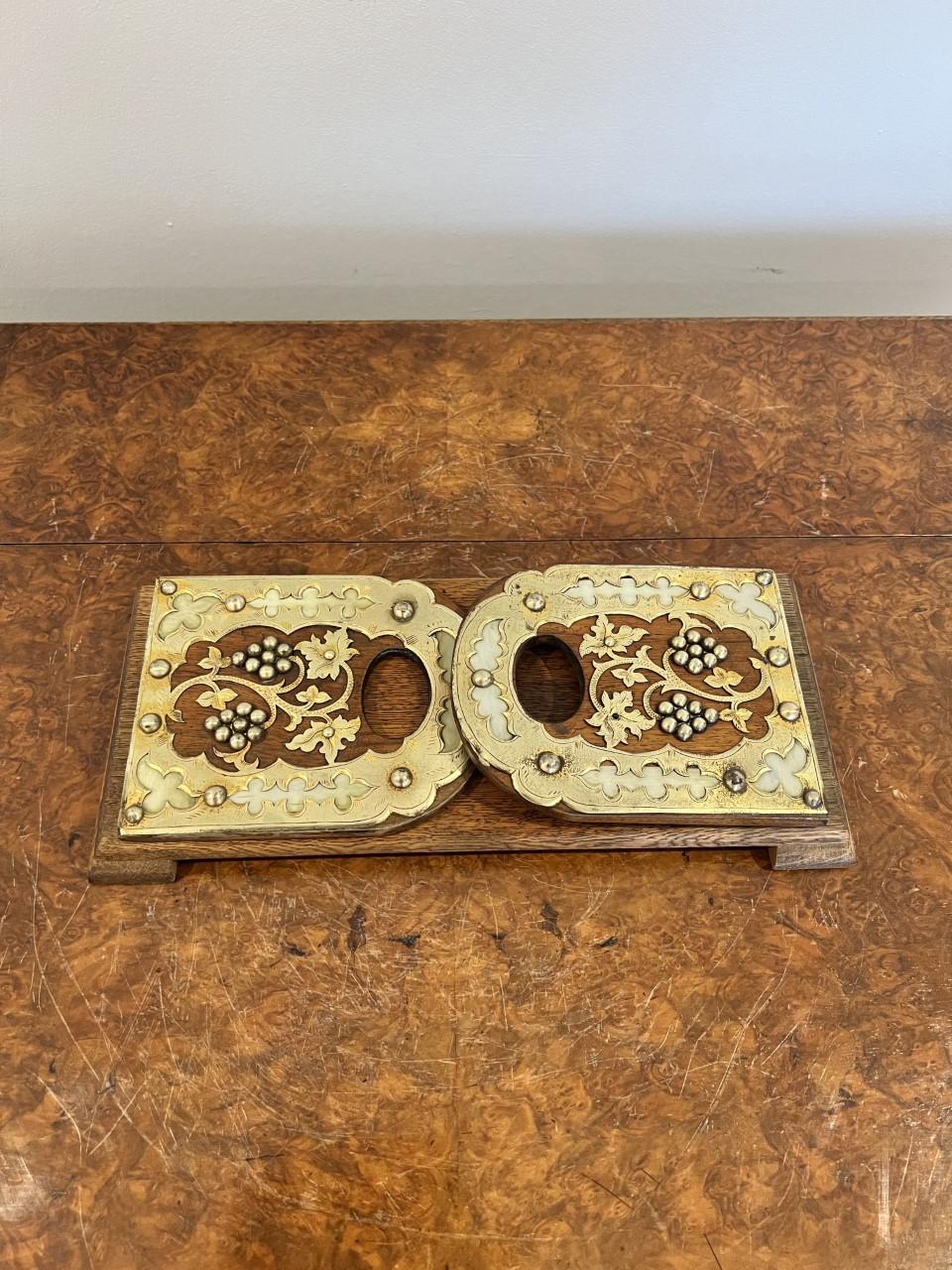Quality antique Victorian brass mounted bookend having a quality book slide with wonderful brass mounts with grape and vine decoration