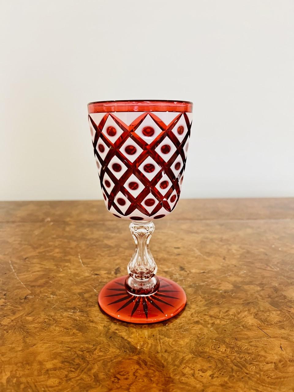 Quality antique Victorian glass overlaid goblet having with overlaid body with rounded decoration raised on a clear glass stem and red star cut foot