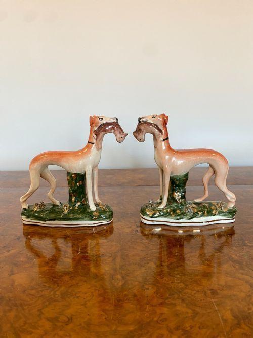 Quality Pair of Antique Victorian Staffordshire Greyhound Dogs