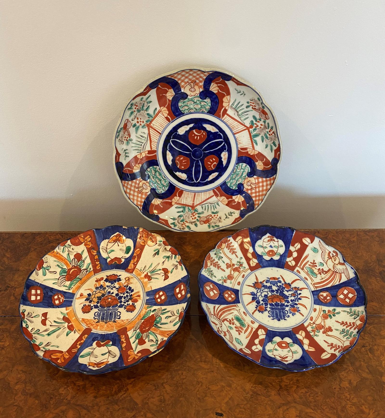 Three Original Quality Antique Japanese Hand Painted Imari Plates