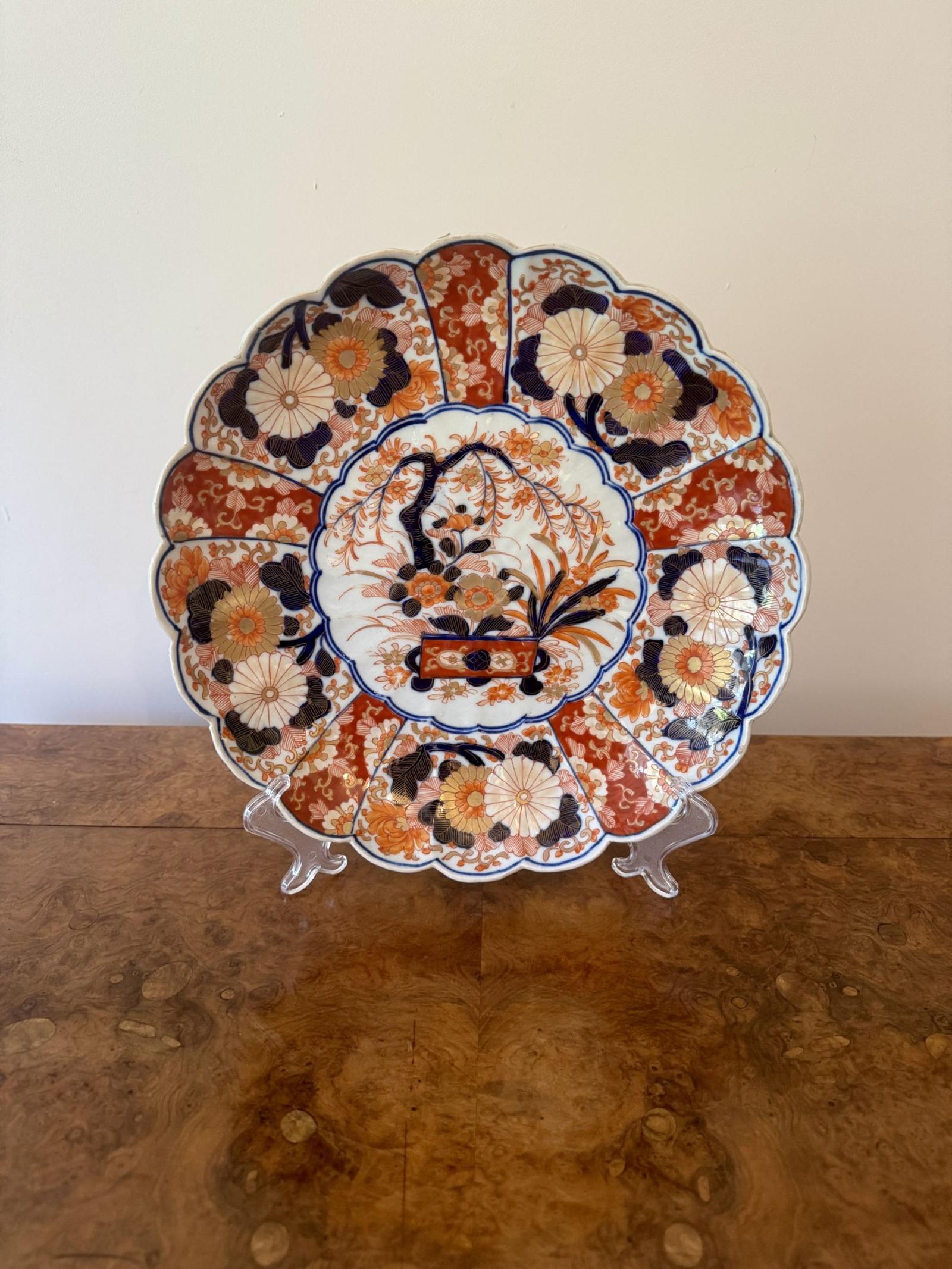 Wonderful quality antique Japanese Imari plate, with a centre panel with flowers and trees surrounded by fantastic panels with flowers and scrolls, hand painted in vibrant red, blue, white and gold colours.